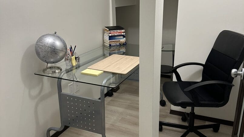 -Separate private office/ den complete with a desk and ergonomic desk chair.