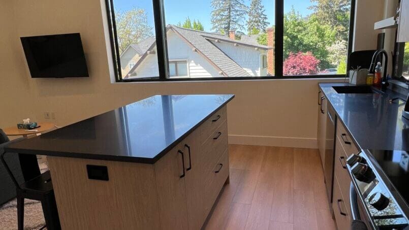 A travel nurse, hospital staff or travelling executives dream. This brand-new luxury suite is in the best location Kelowna has to offer with a 10-minute walk to Kelowna General hospital along famous, historic Abbott Street. Our one bed, one bath 700 sq. ft Carriage house suite offers high end finishes with the most beautiful view of Kelowna’s aware winning Maple Street.