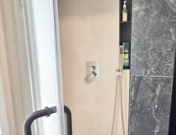 Entire Cozy Guest Suite Separate from main house, features a modern fireplace and has been newly renovated with high-quality materials, including engineered hardwood floors, Italian tiles, a modern rain shower faucet set, a Kohler faucet with a one-piece stone sink. It also includes a new touch-activated light, a quiet Panasonic fan.