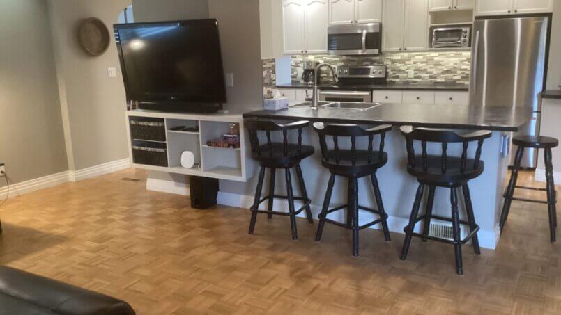 Complete 1400 sq. Ft. main floor. 2 bedroom, one with ensuite, main bathroom, office, kitchen, living room, dining room. Shared laundry downstairs with extra area for ironing, folding, drying rack. 8’ x 12’ Covered back deck. Stairs down to 14’ x 36’ ground level wooden deck with covered 12’ x 14’ gazebo. Shared back yard maintained by owner.